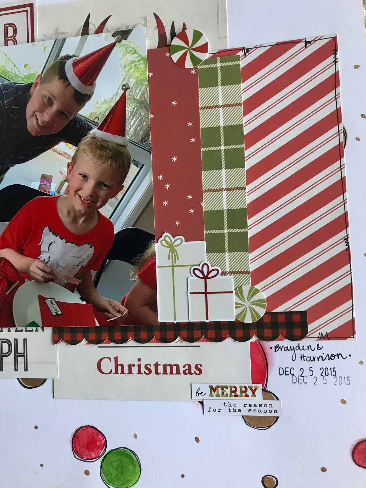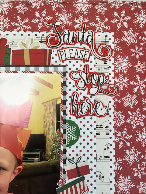 Other than that my layout is reasonably simple...some layered patterned papers as well as some sticker embellishments from the Simple Stories 'Classic Christmas' collection.